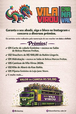 Vila Laura, Salvador-BA, Brasil - CEP: 40.270-000+55 71 99999-9999contato@blocovilavirou.com.br